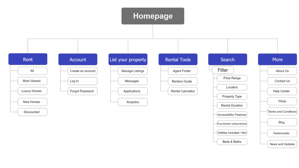 Navigational challenges resulting in a disrupted user flow while searching for rental homes.