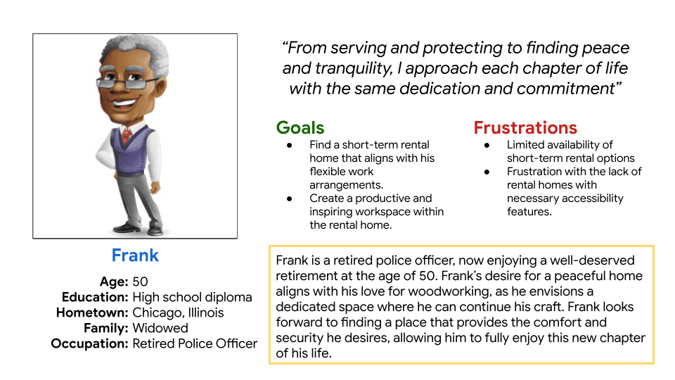 Understanding users is key to delivering an exceptional web experience. Through insightful interviews, I crafted user personas to embody the needs, desires, and behaviors of the target audience. This persona has a fictional character who represents a composite of real users, ensuring that the design decisions align closely with their goals and expectations.