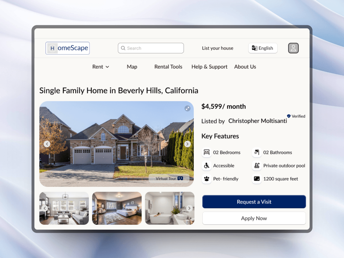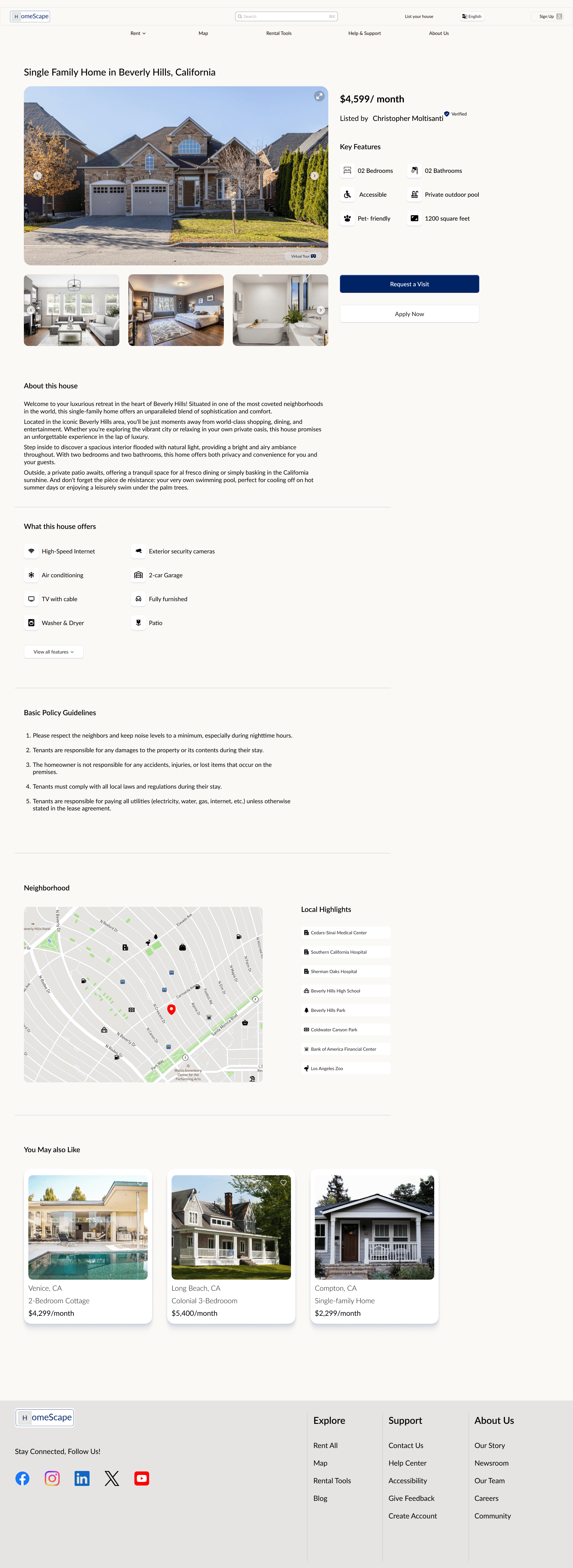 HomeScape is a modern and user-centric rental-home website. HomeScape caters to a diverse range of users, including young professionals, families, and retirees, who are in search of rental homes that align with their unique needs and preferences.