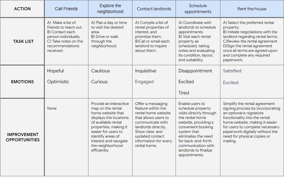 I created a user journey map which is a series of experiences a user has as they achieve a specific goal, to help identify improvement opportunities .